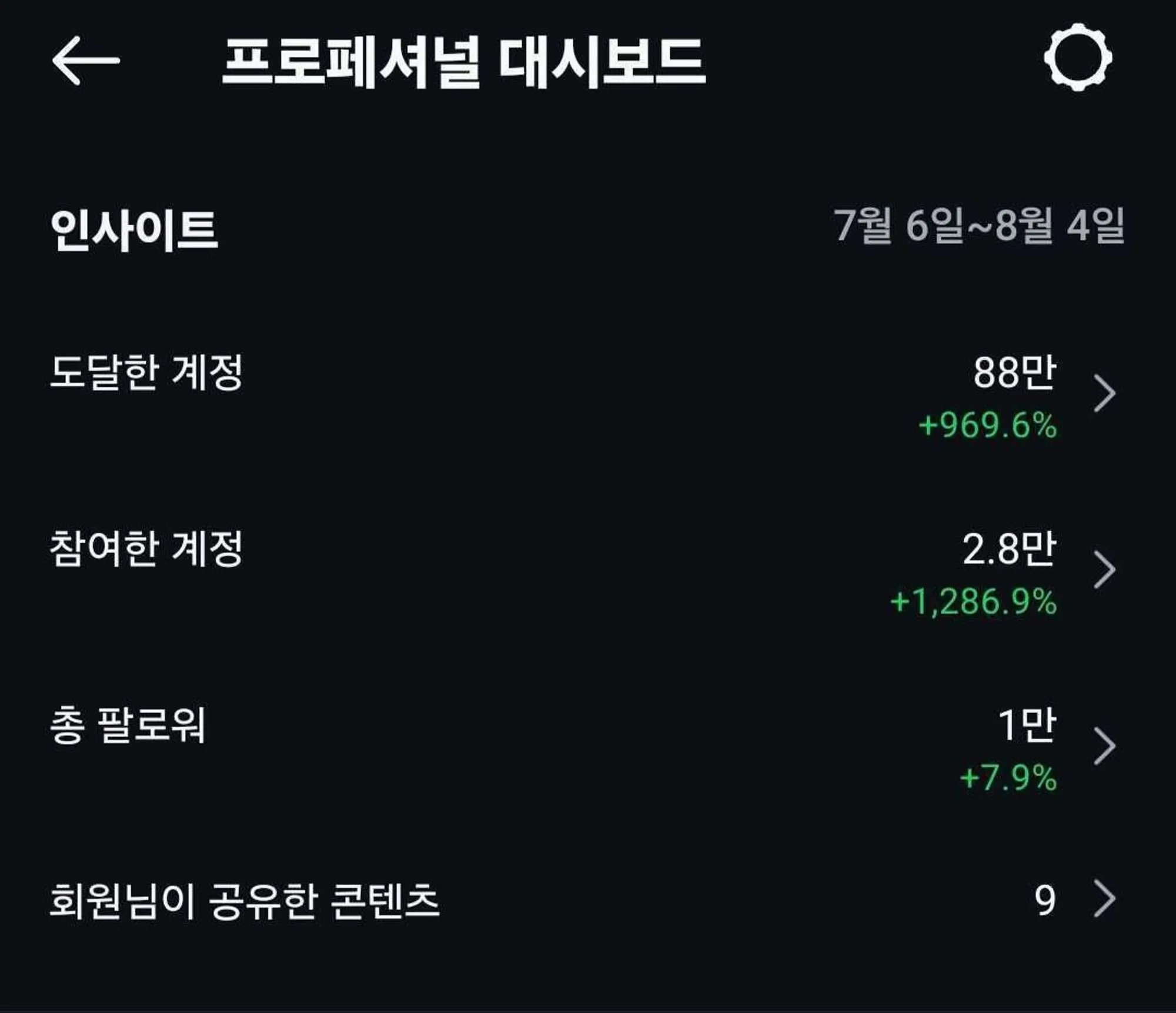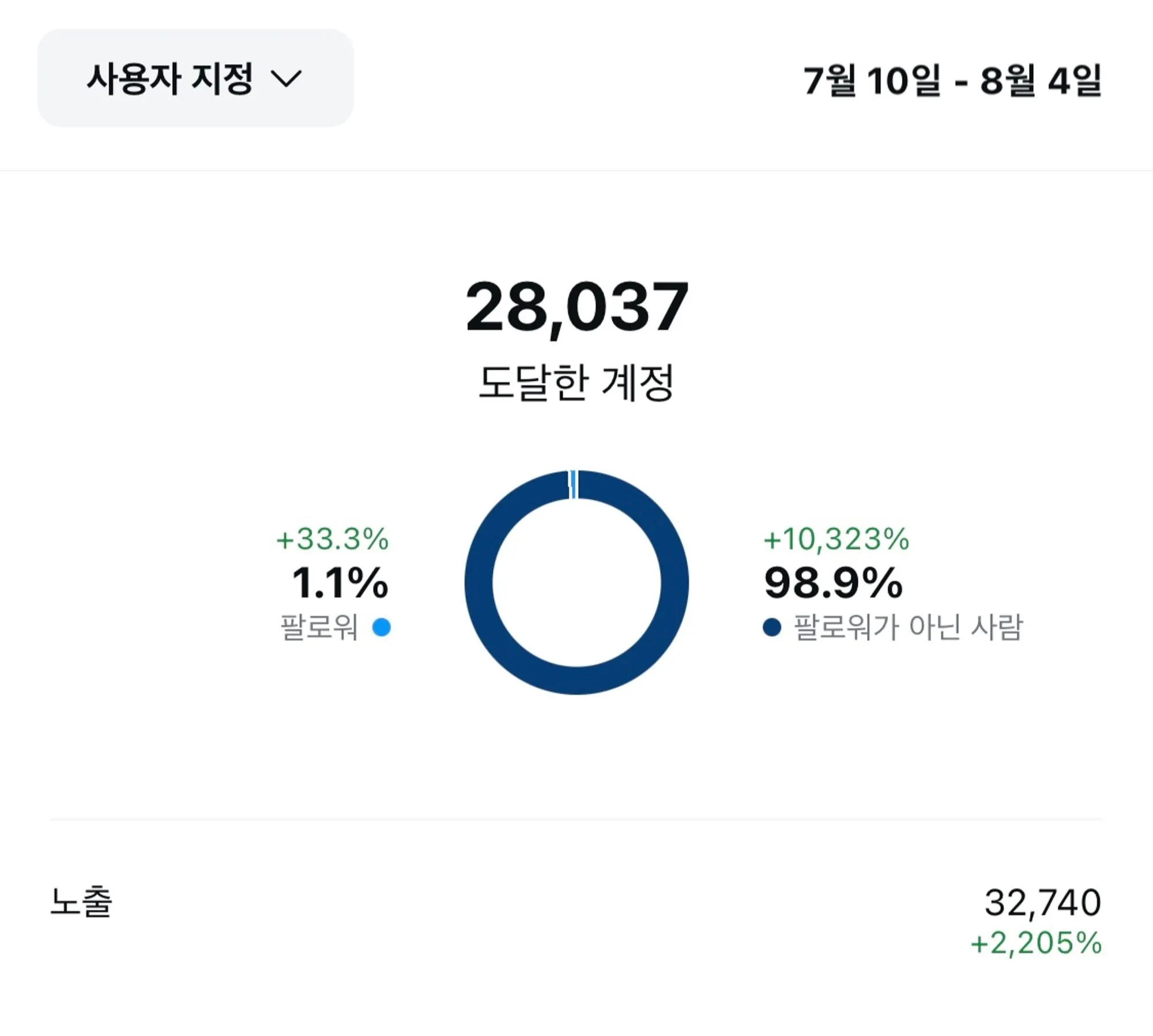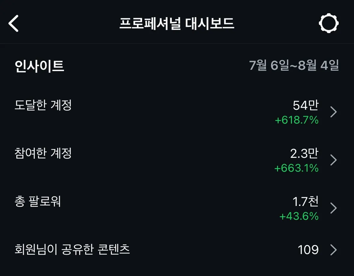 4주간 10,323%나 더 많은 사람들에게 콘텐츠를 전달하고, 2,205%나 더 많이 콘텐츠를 노출시킨 참가자님