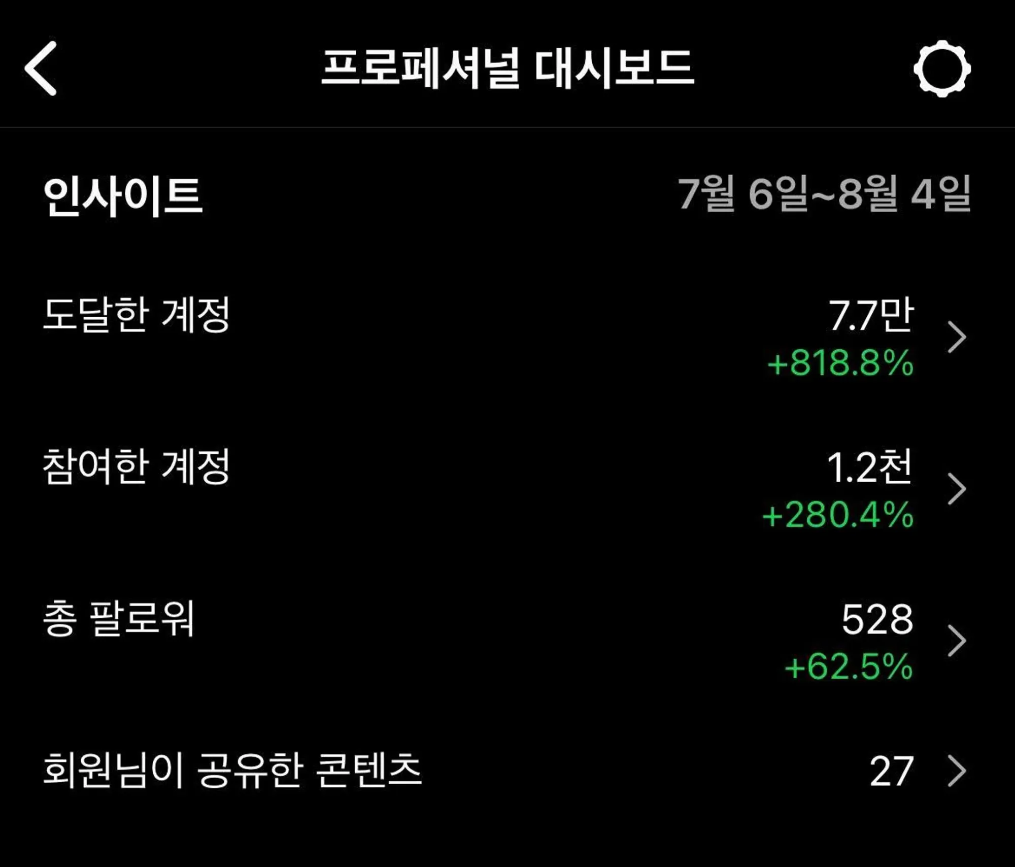 4주간 818% 더 많은 사람들에게 계정이 도달하고, 62%나 더 많은 팔로워를 모시게 된 참가자님