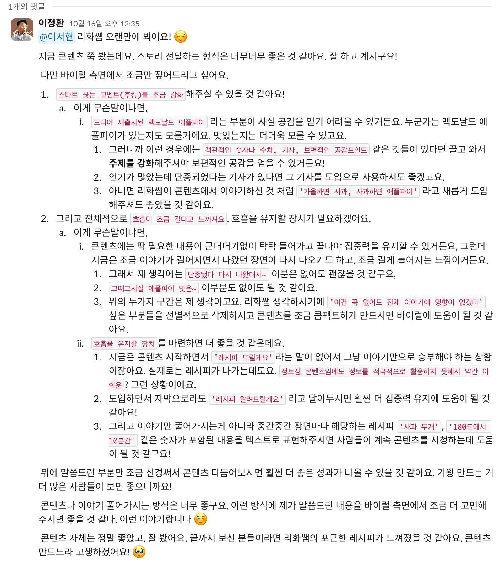 일대일 콘텐츠 피드백,