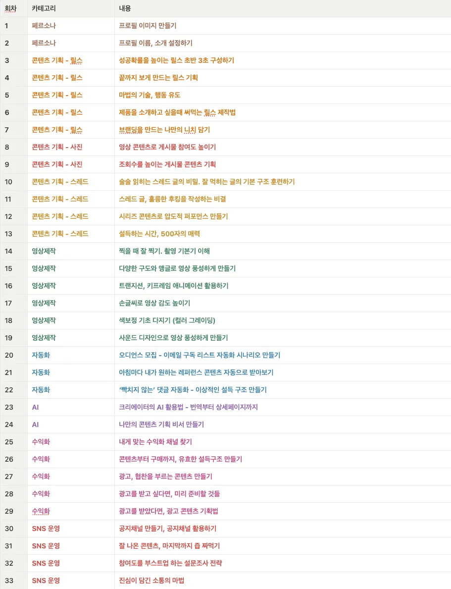 커리큘럼은 릴스, 스레드 중심이에요.