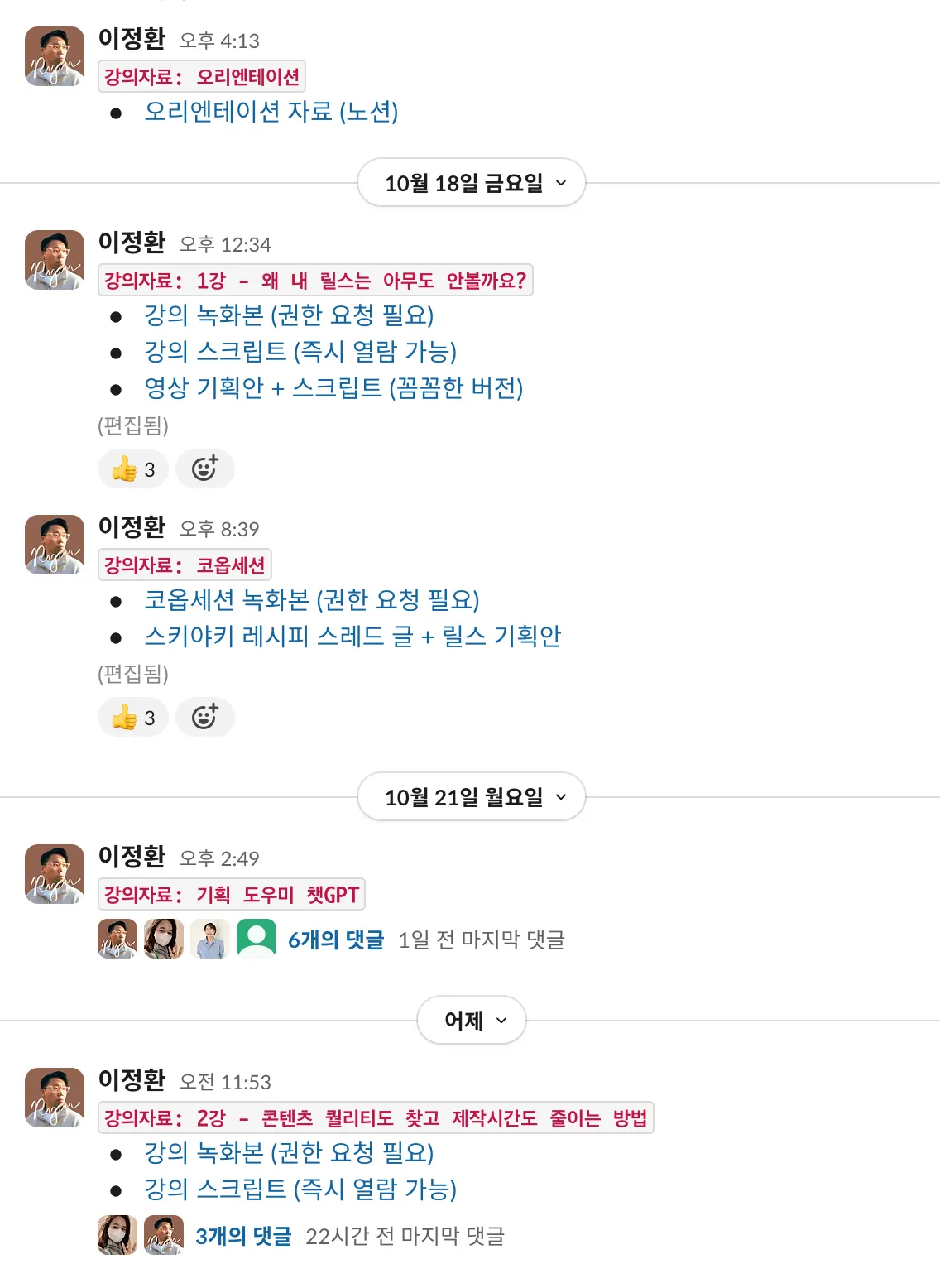 복습을 원하는 분들을 위해 강의 종료 후 녹화본+스크립트 형태로 제공 해 드리고 있습니다.